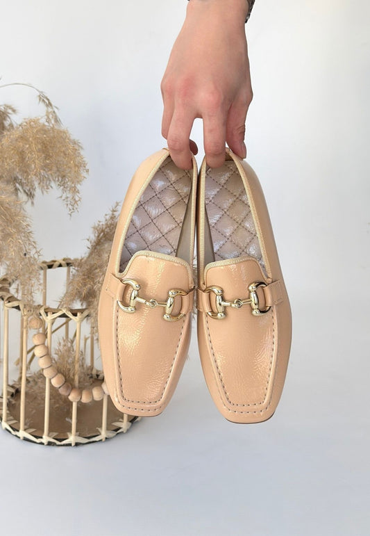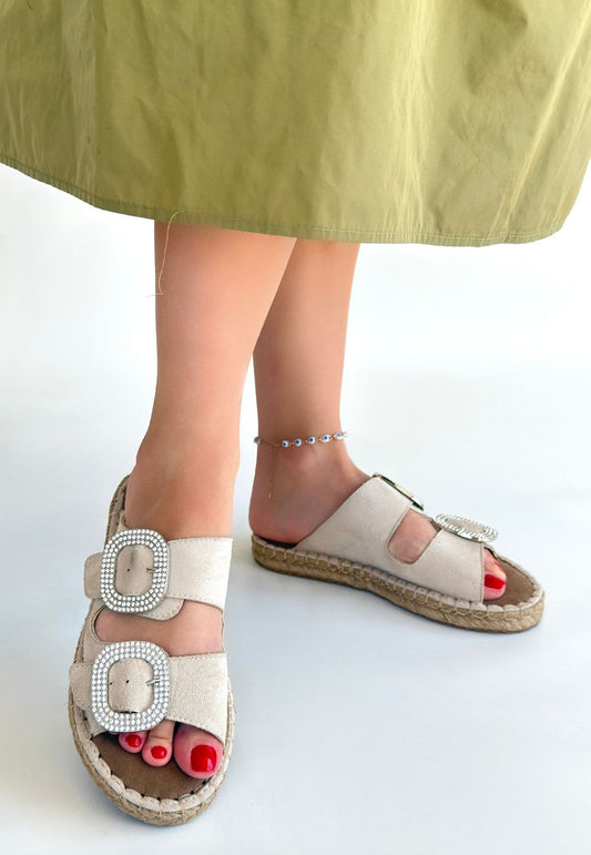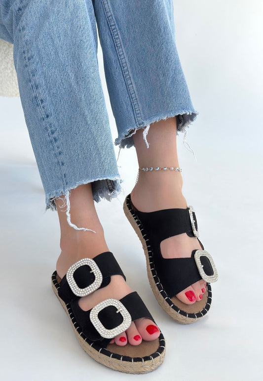 Hante Siyah Beyaz Keten Taşlı Babet Ayakkabı