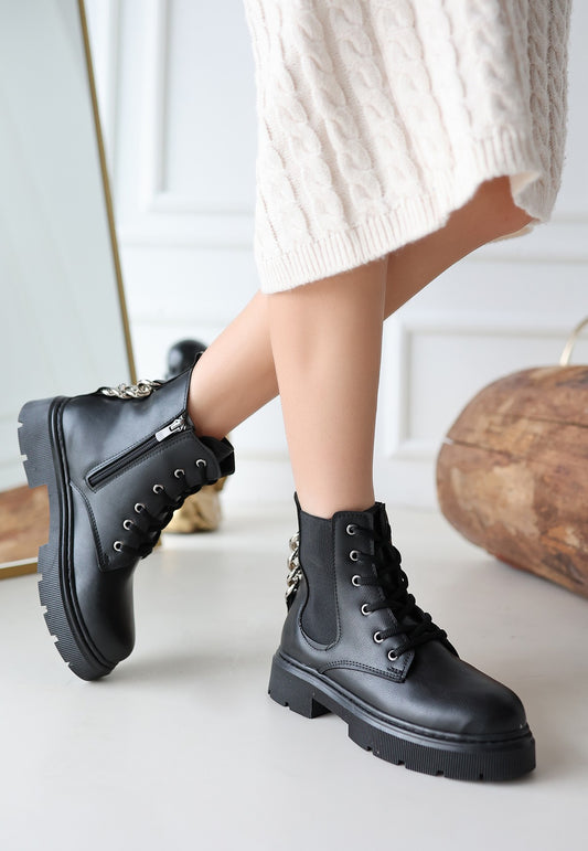 Hawer Siyah Cilt Bağcıklı Spor Ayakkabı