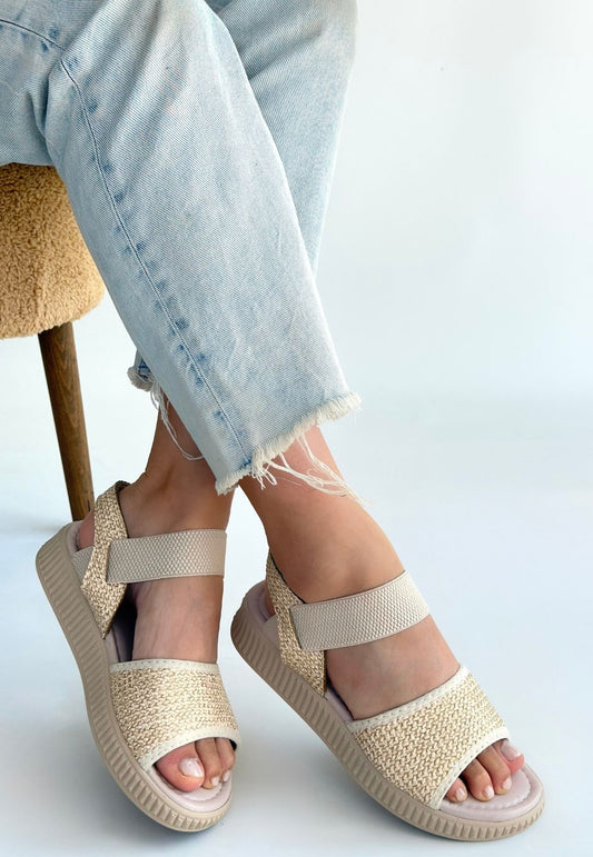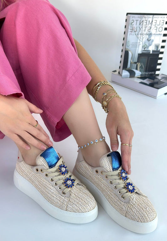 Iwer Bej Hasır Dokumalı Bağcıklı Spor Ayakkabı