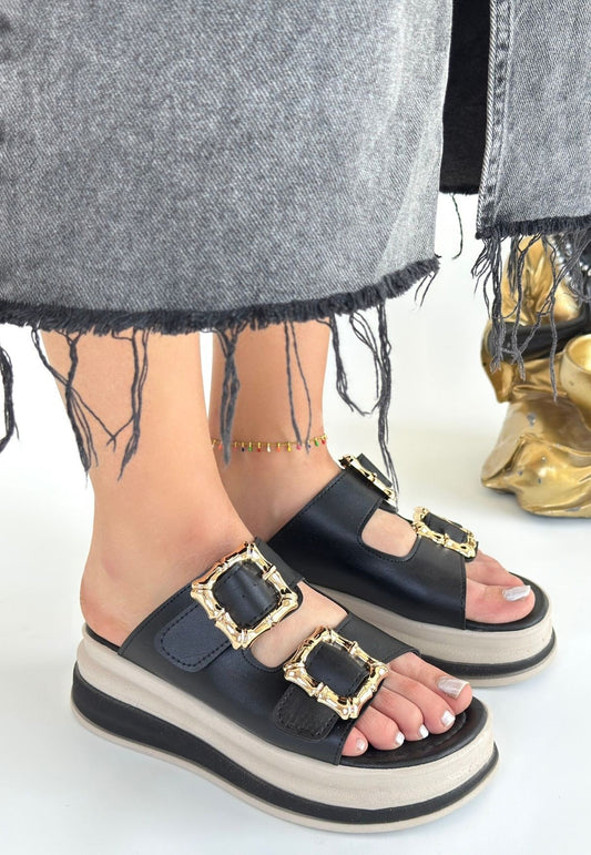 Janes Siyah Cilt Dolgu Topuk Ayakkabı