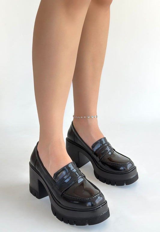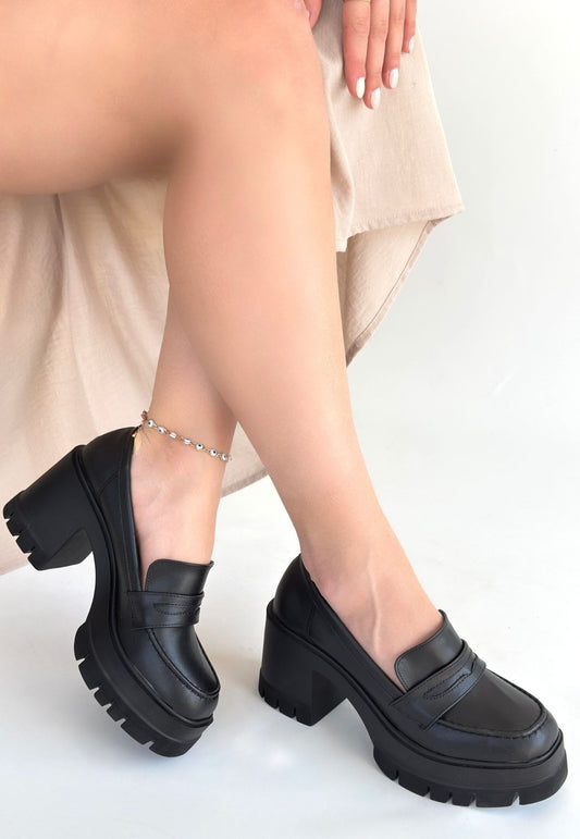 Jecci Siyah Cilt Topuklu Ayakkabı