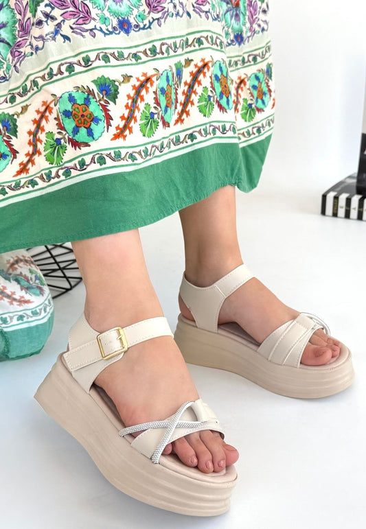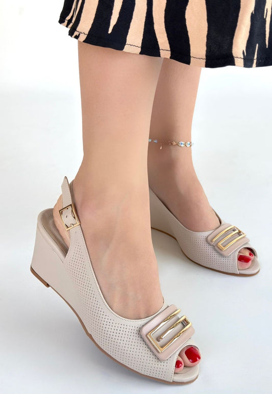 Mamba Bej Cilt Dolgu Topuk Ayakkabı