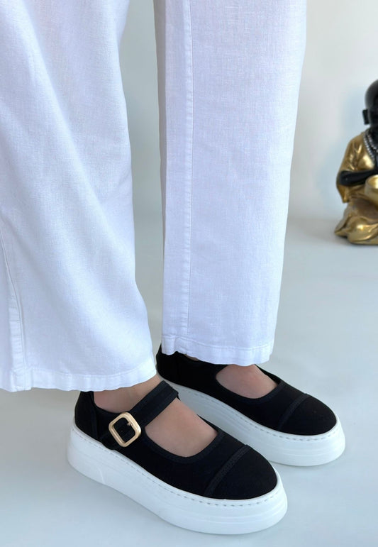 TükendiLunni Siyah Keten Spor Ayakkabı