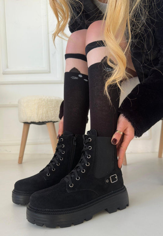 TükendiBoby Siyah Süet Bağcıklı Bot