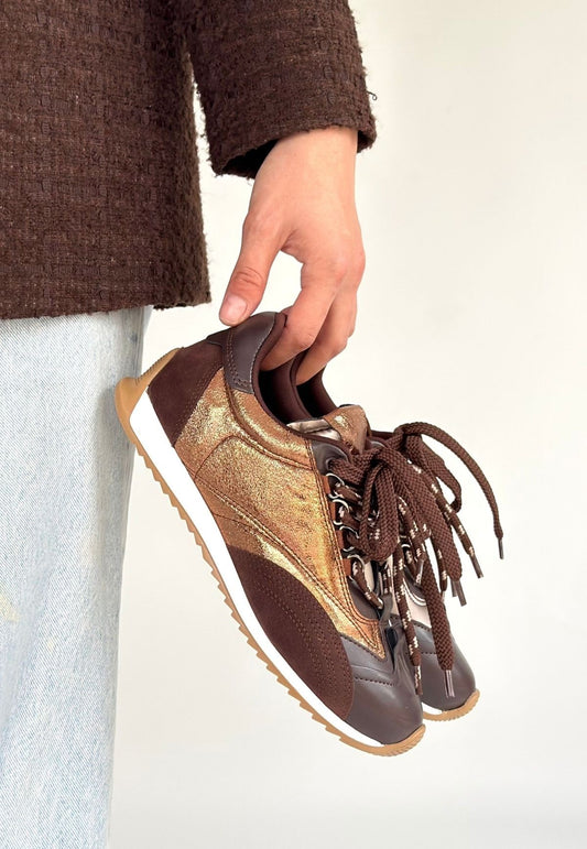 Rimay Kahverengi Cilt Boncuk İşlemeli Spor Ayakkabı
