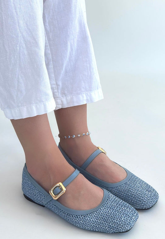 Rives Mavi Cilt Hasır Dokumalı Babet Ayakkabı
