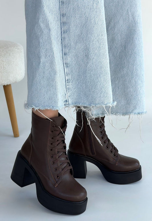 Tsan Kahverengi Cilt Bağcıklı Topuklu Bot