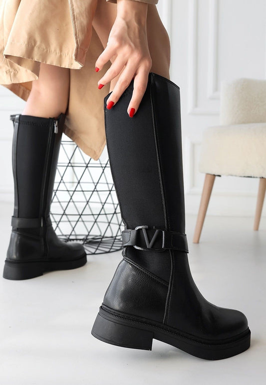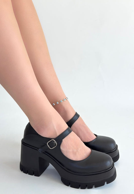 Desniy Siyah Cilt Topuklu Ayakkabı