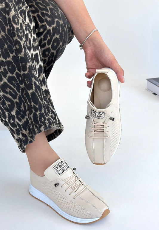 Finna Bej Cilt Bağcıklı Spor Ayakkabı