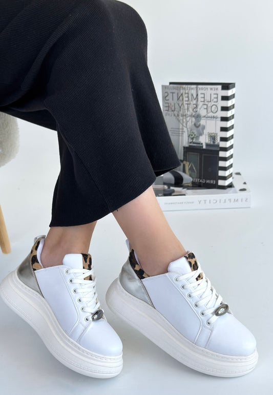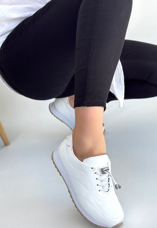 Finna Beyaz Cilt Bağcıklı Spor Ayakkabı