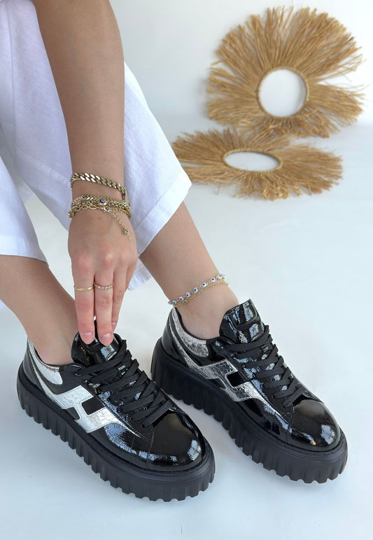 Finna Siyah Cilt Bağcıklı Spor Ayakkabı