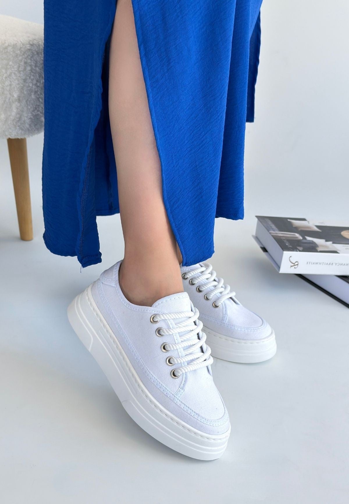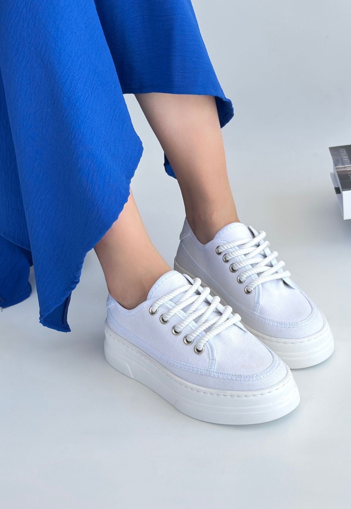 Carin Beyaz Keten Bağcıklı Spor Ayakkabı