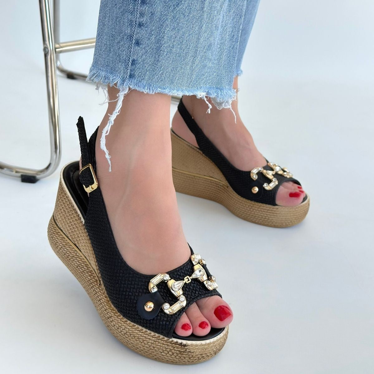 Caver Siyah Cilt Dolgu Topuk Sandalet