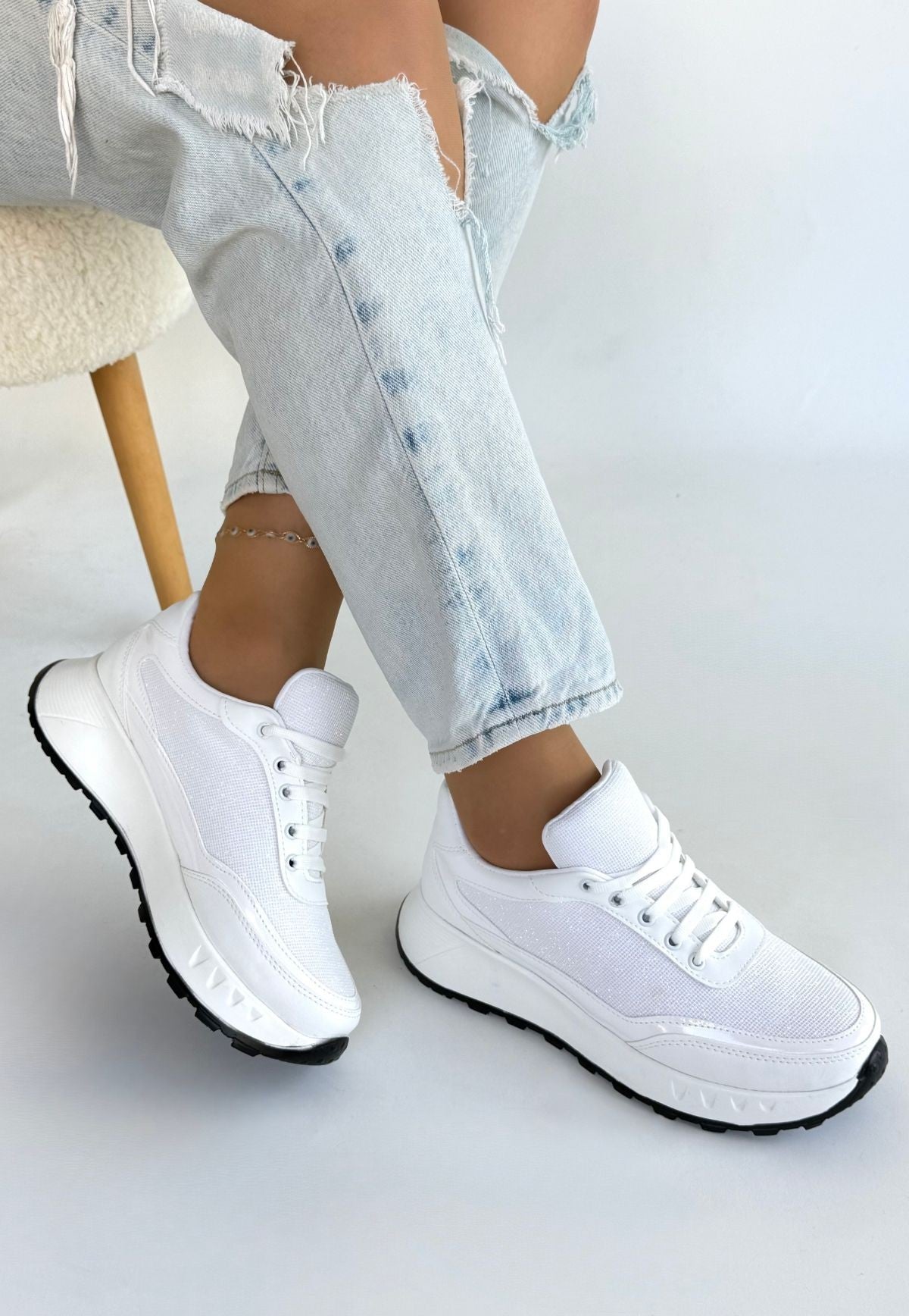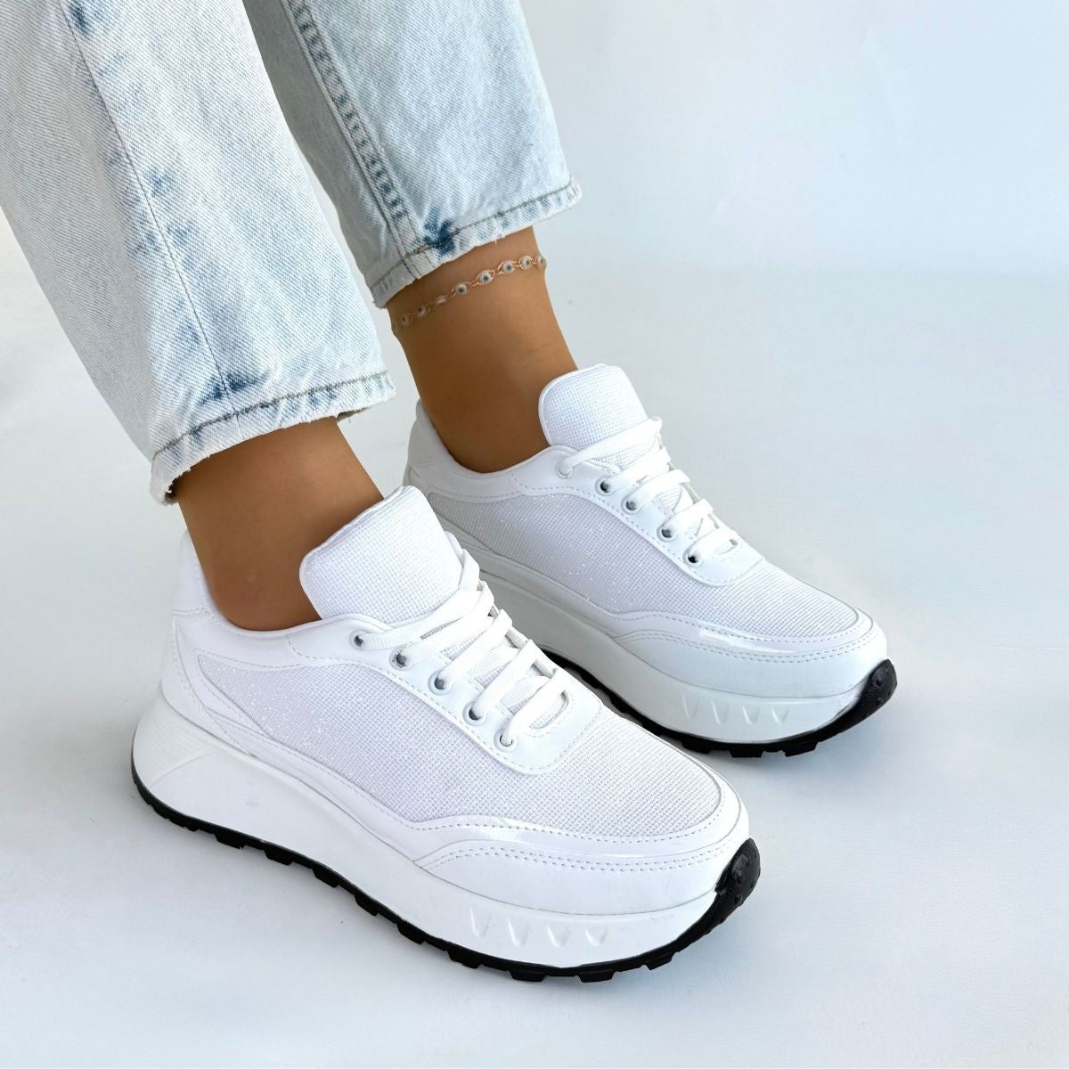 Edva Beyaz Cilt Bağcıklı Spor Ayakkabı