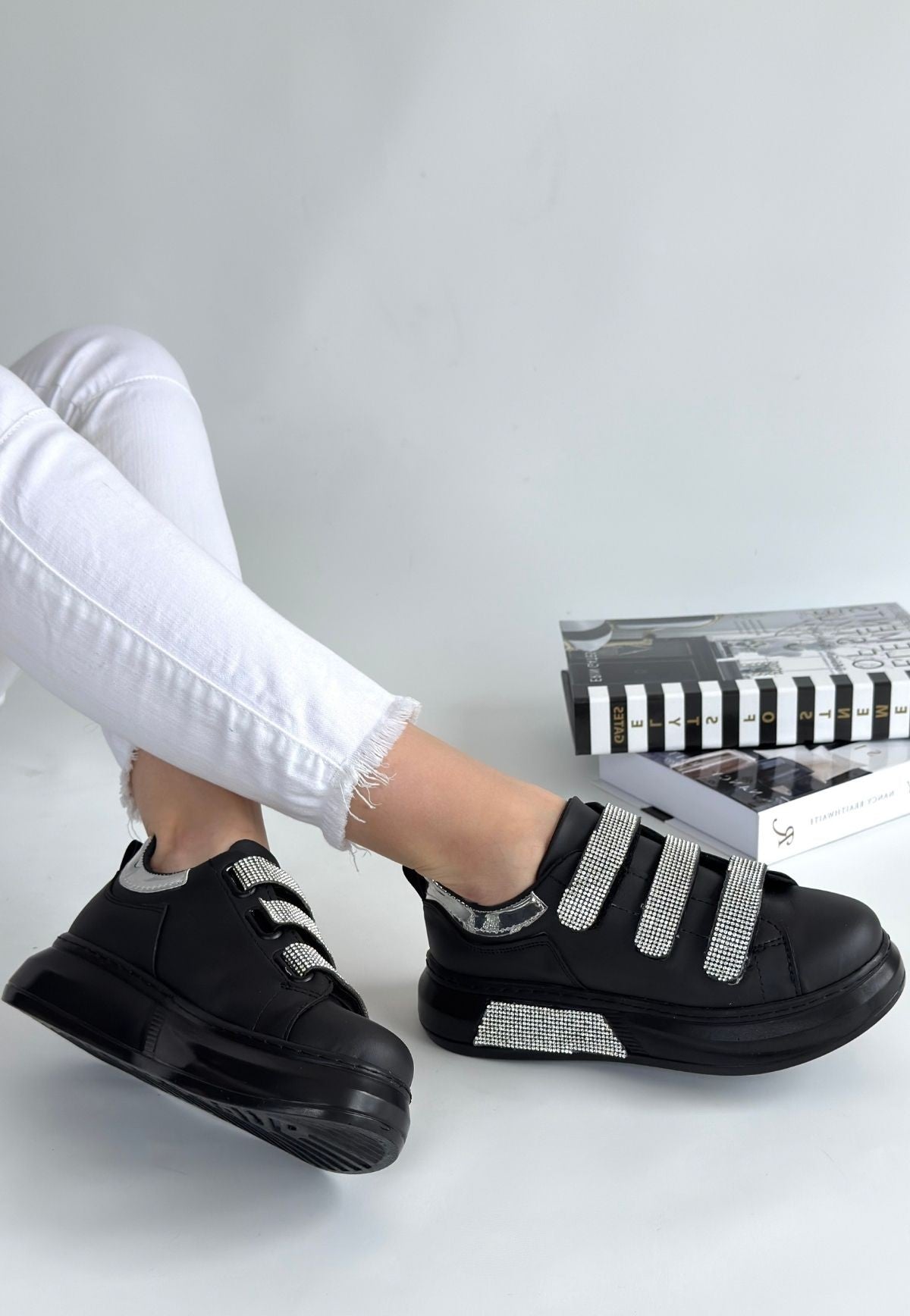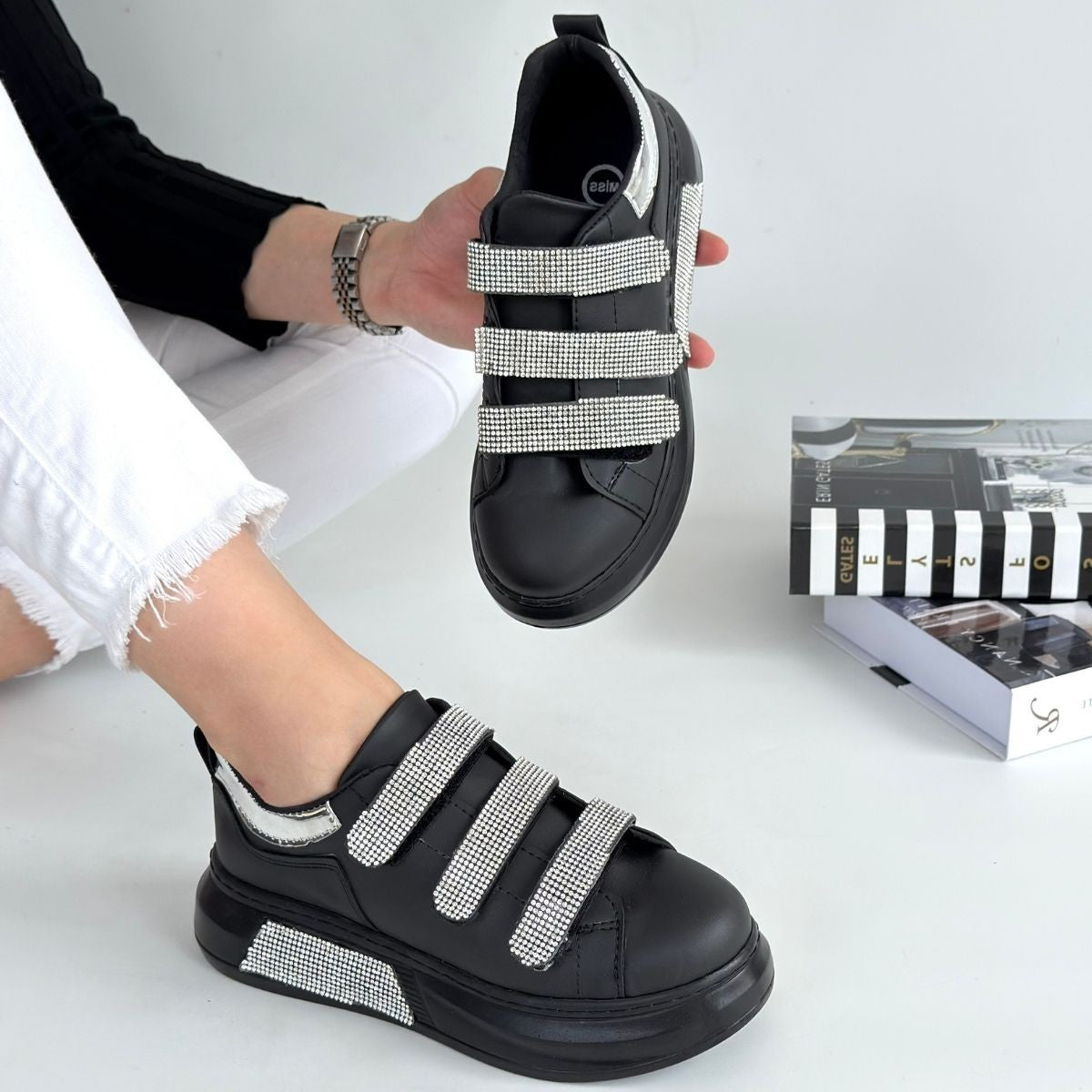 Elika Siyah Cilt Cırt Cırtlı Spor Ayakkabı