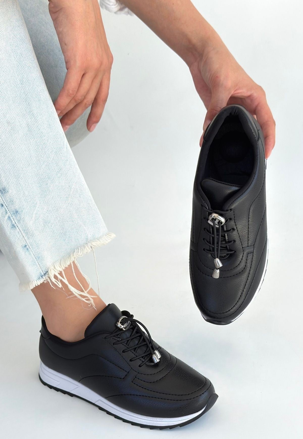 Finna Siyah Cilt Bağcıklı Spor Ayakkabı