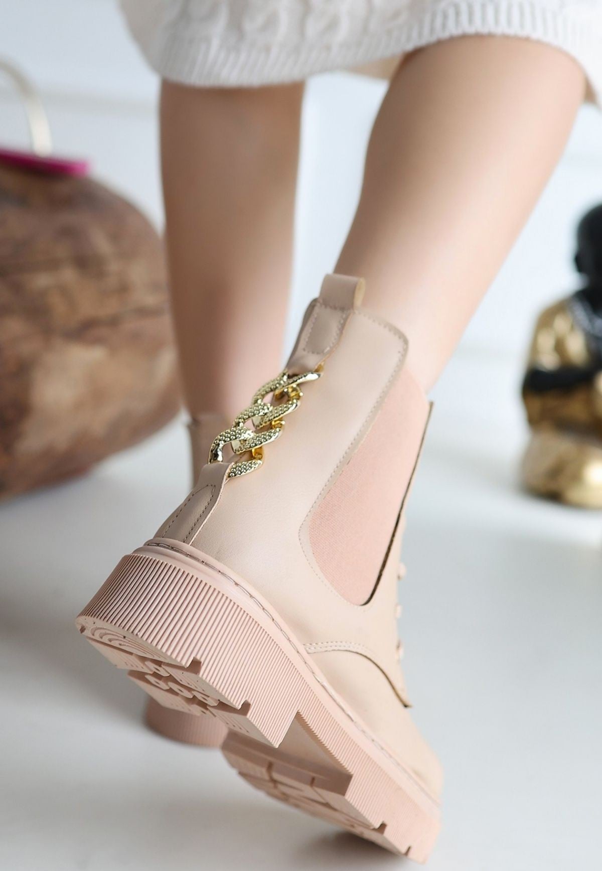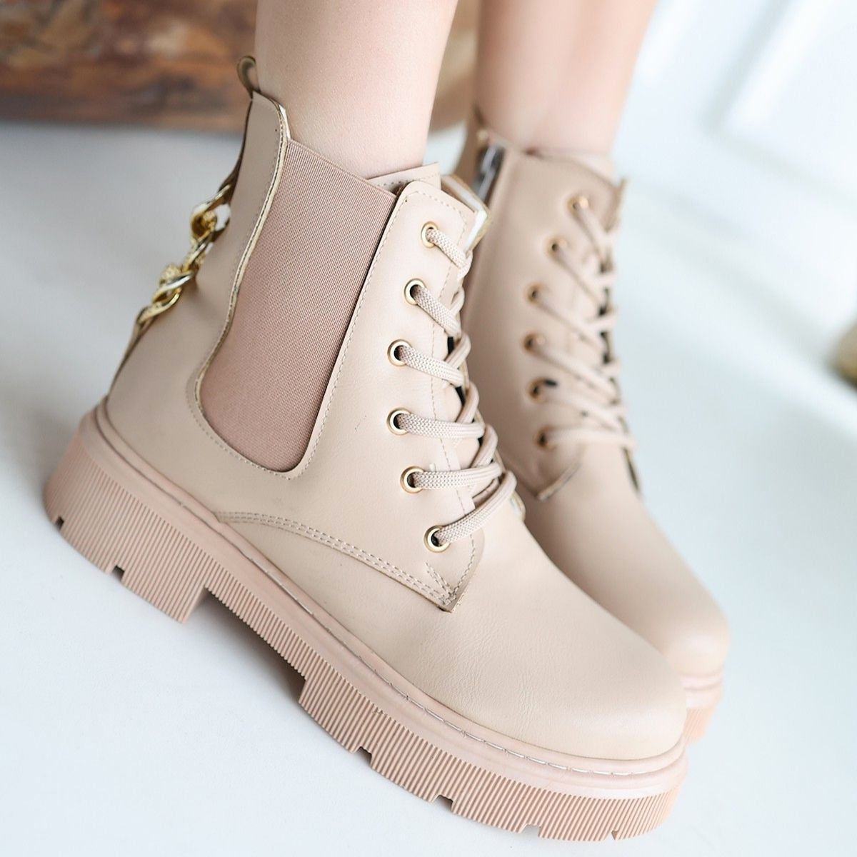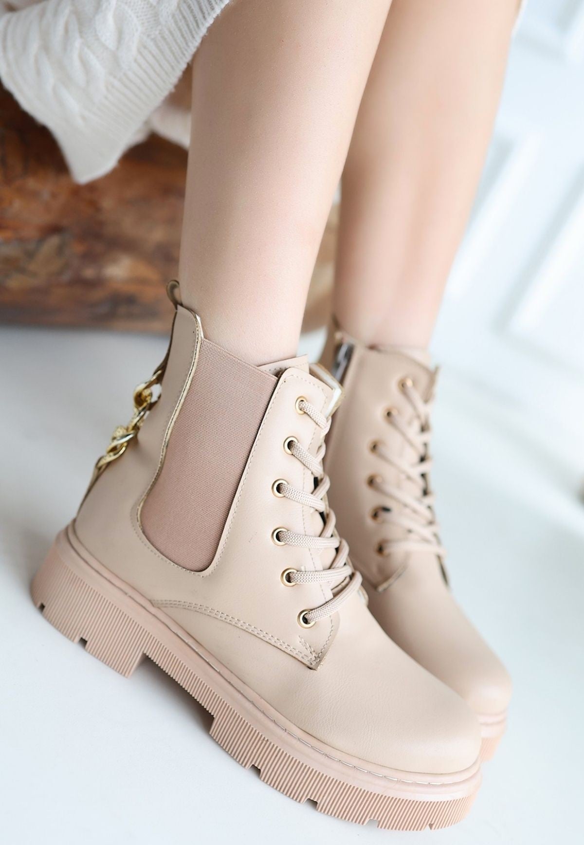 Detay : Topuklu Yandan Fermuarlı Bağcıklı Bot