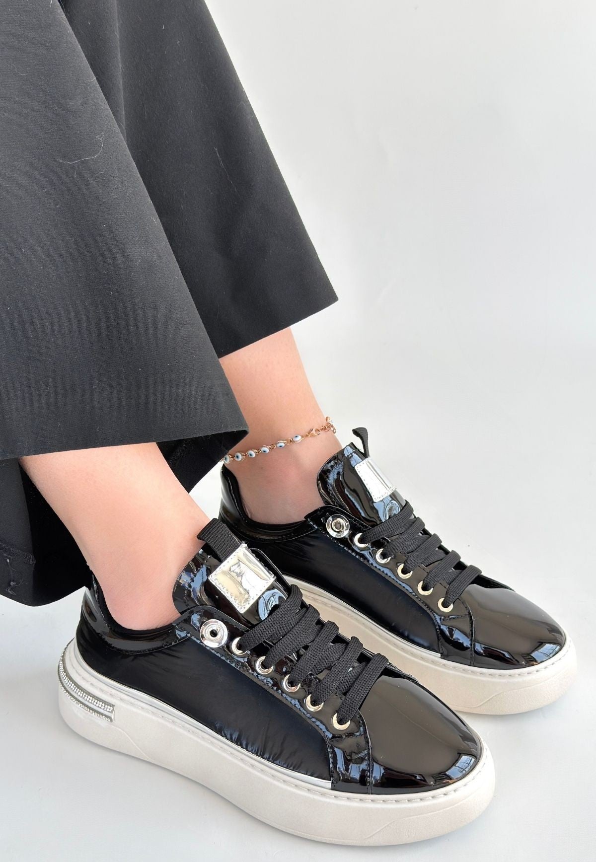 Hley Siyah Rugan Paraşüt Detaylı Bağcıklı Spor Ayakkabı