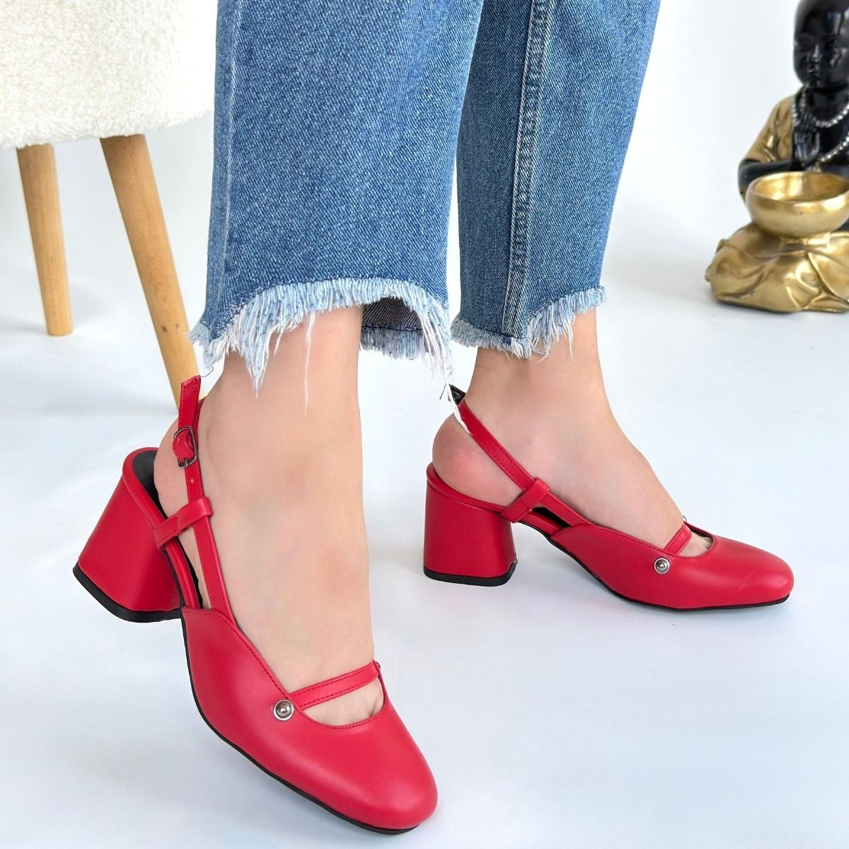 Jecci Kırmızı Cilt Topuklu Ayakkabı