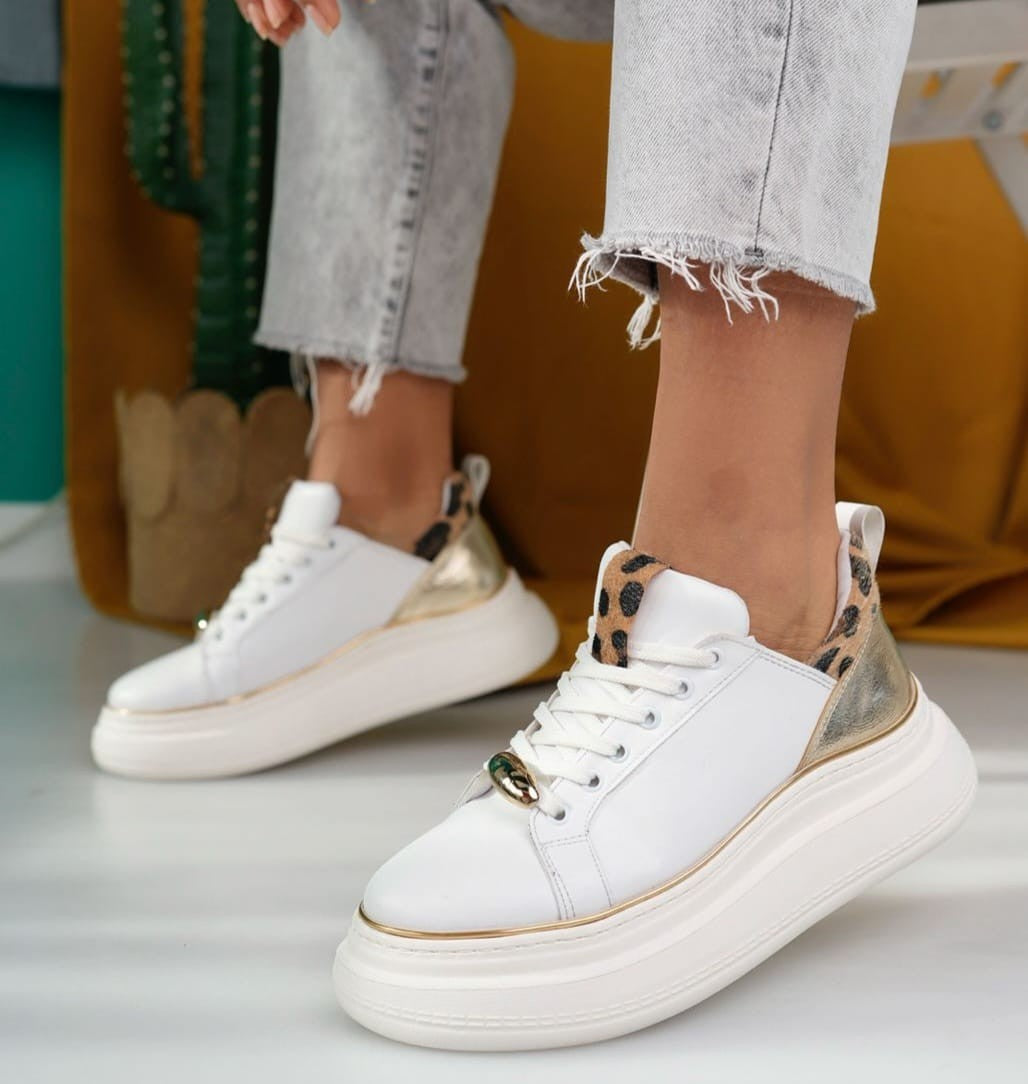 Jista Beyaz Cilt Bağcıklı Spor Ayakkabı