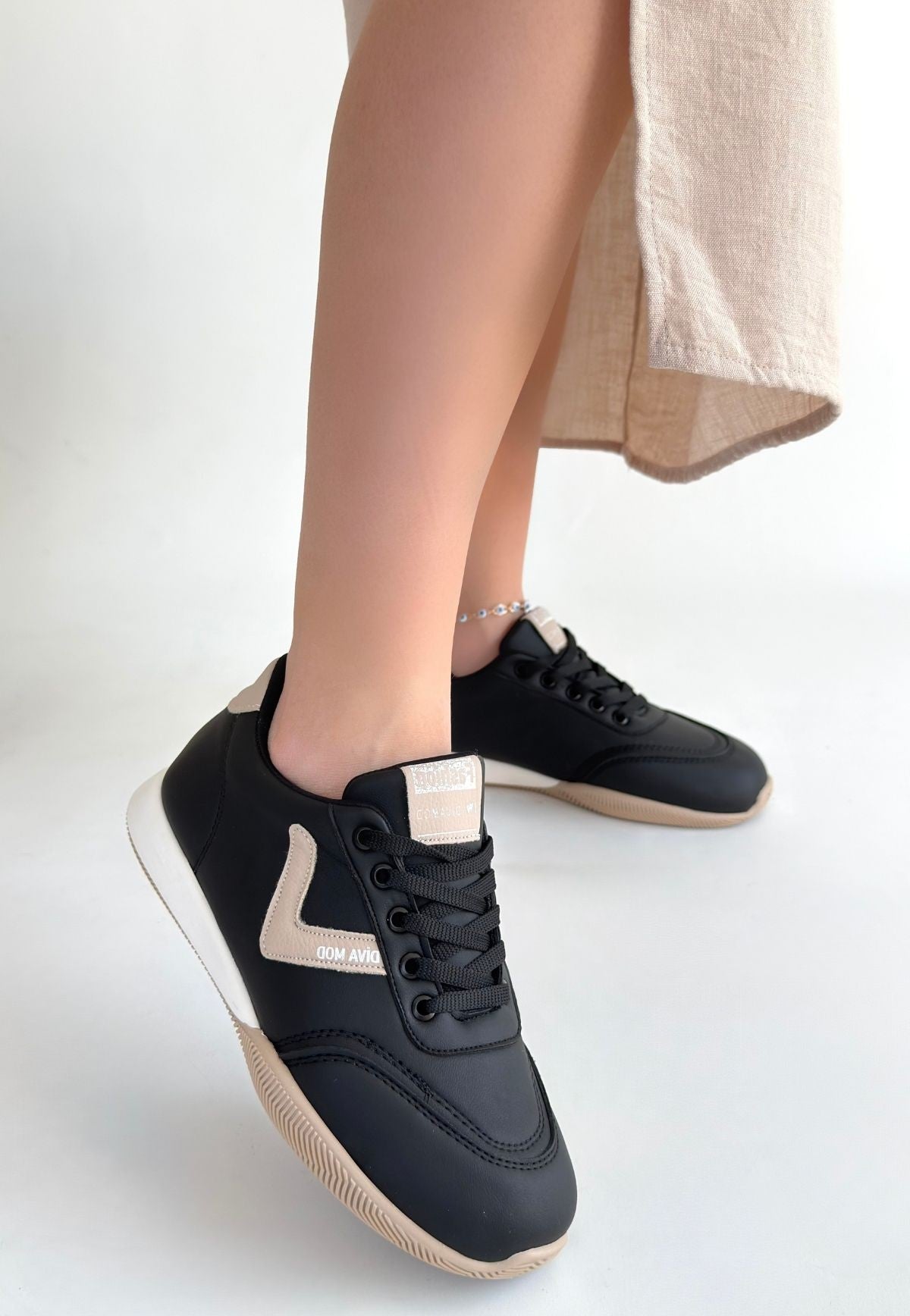 Jowen Siyah Cilt Bej Detaylı Bağcıklı Spor Ayakkabı