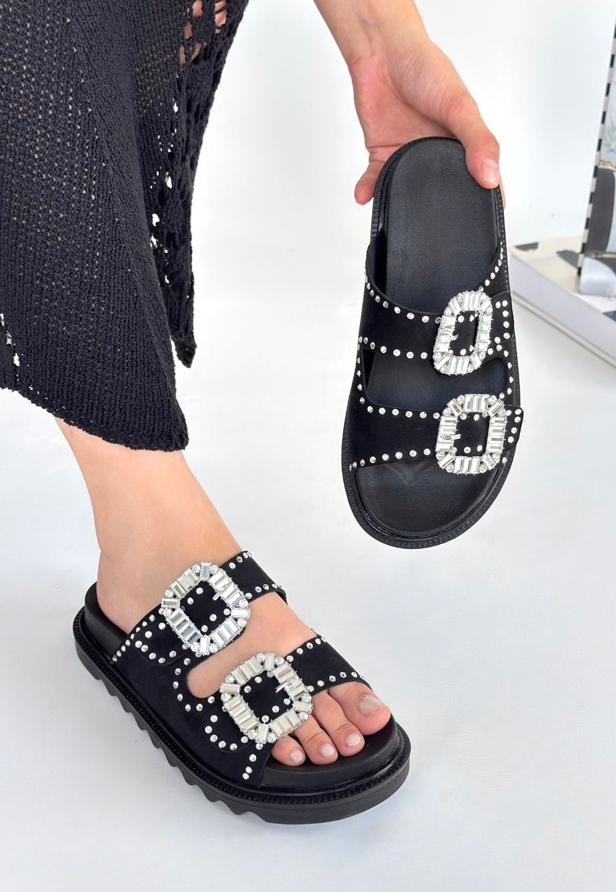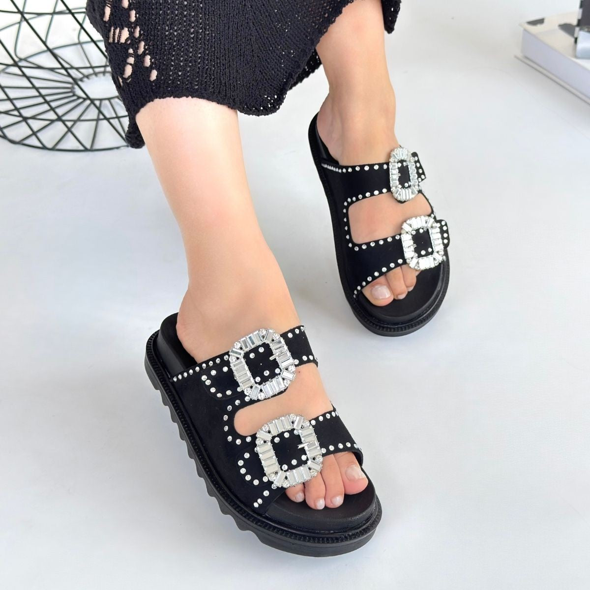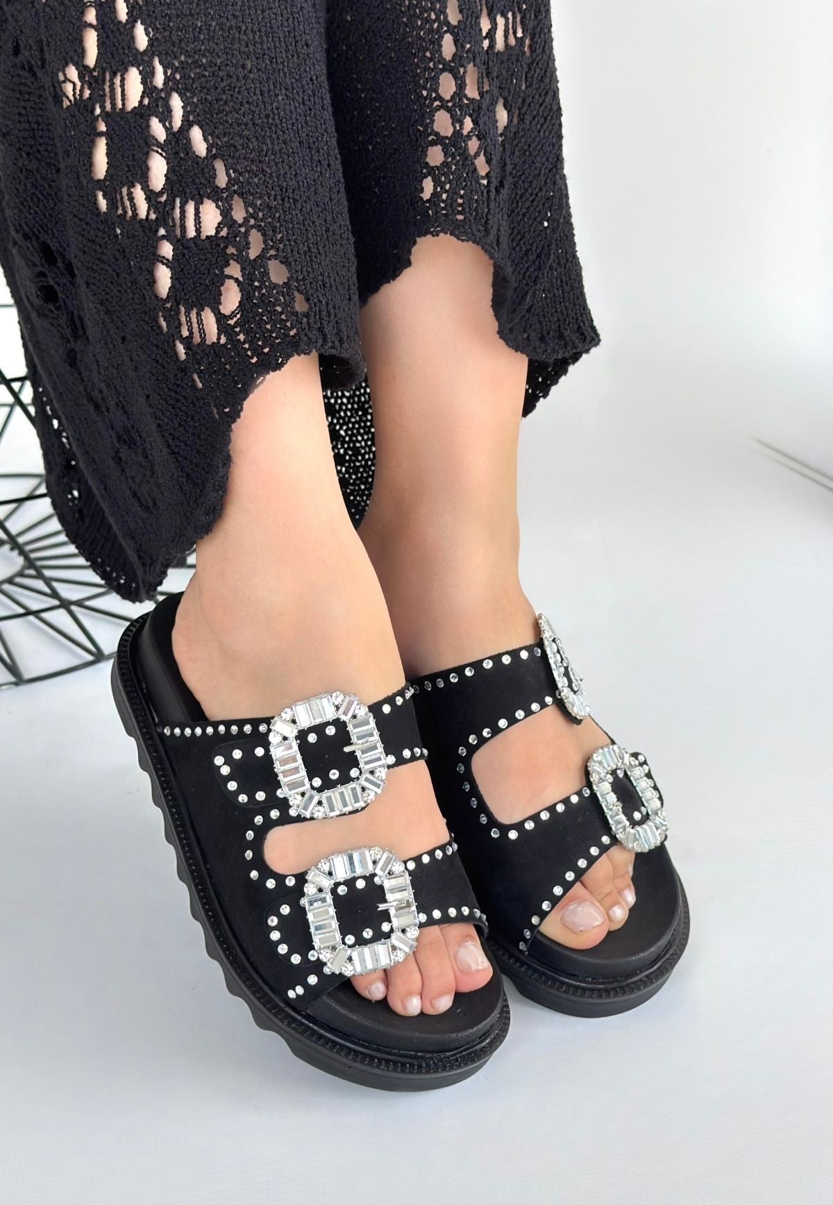 Juana Siyah Nubuk Taşlı Terlik