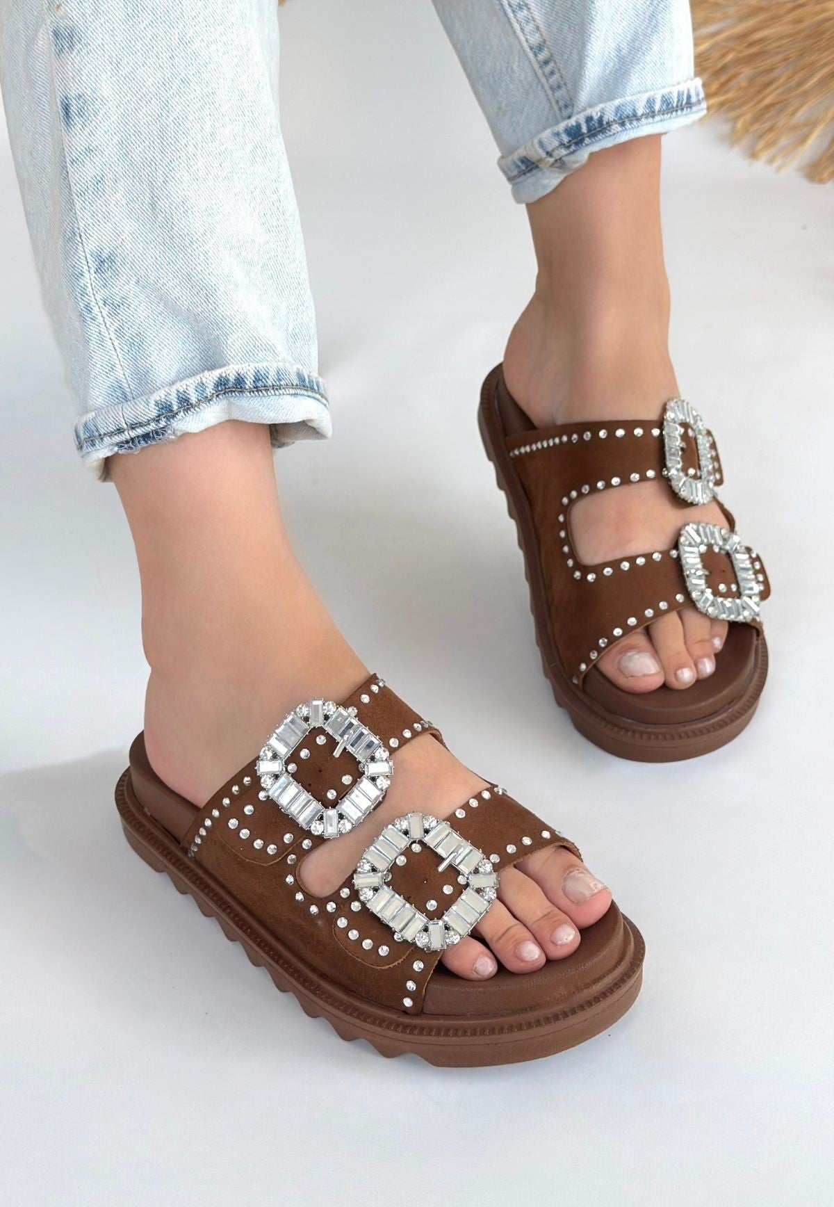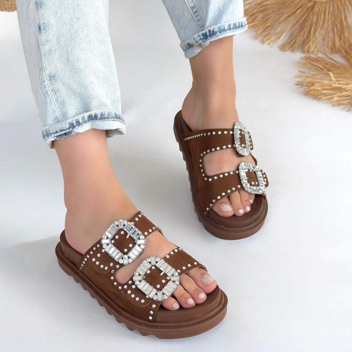 Juana Taba Nubuk Taşlı Terlik