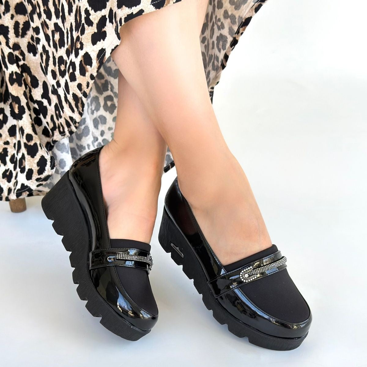 Kear Siyah Rugan Dolgu Topuk Ayakkabı