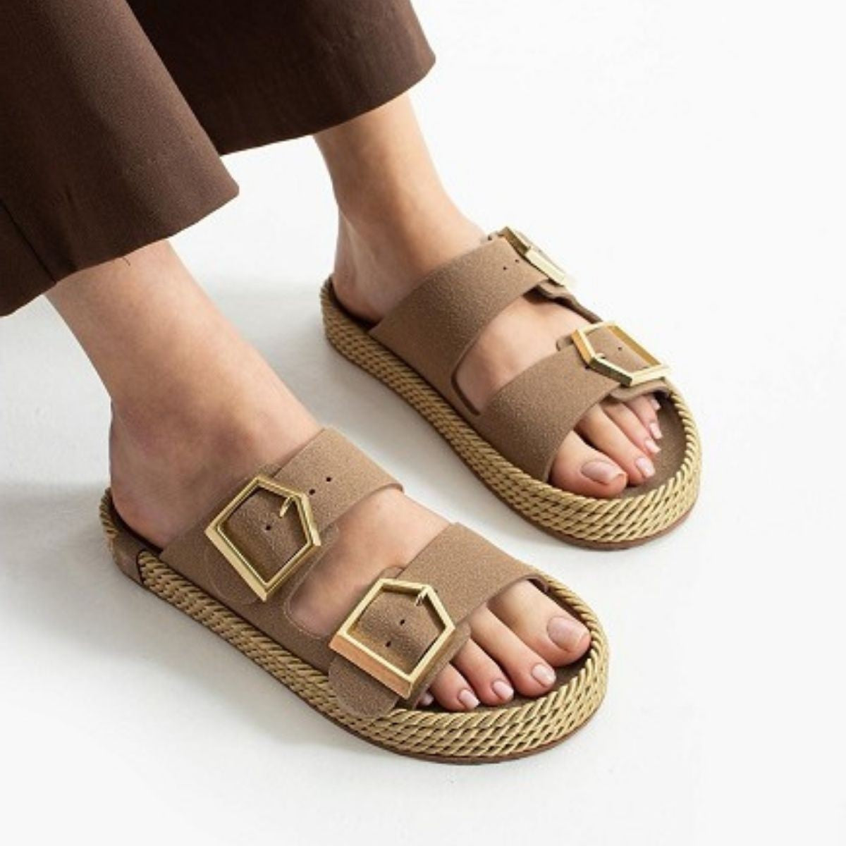 Loera Vizon Nubuk Çift Tokalı Terlik
