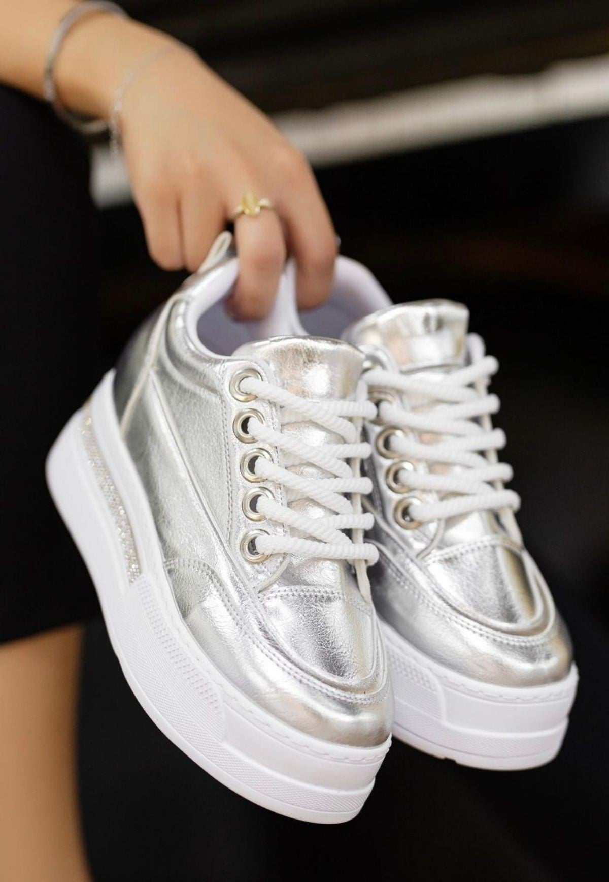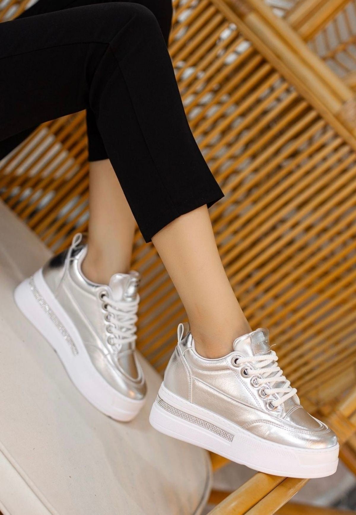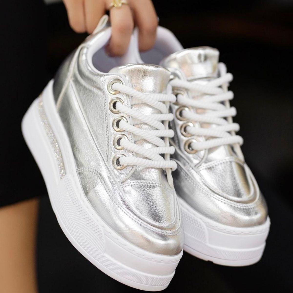 Lulu Gümüş Rugan Bağcıklı Spor Ayakkabı