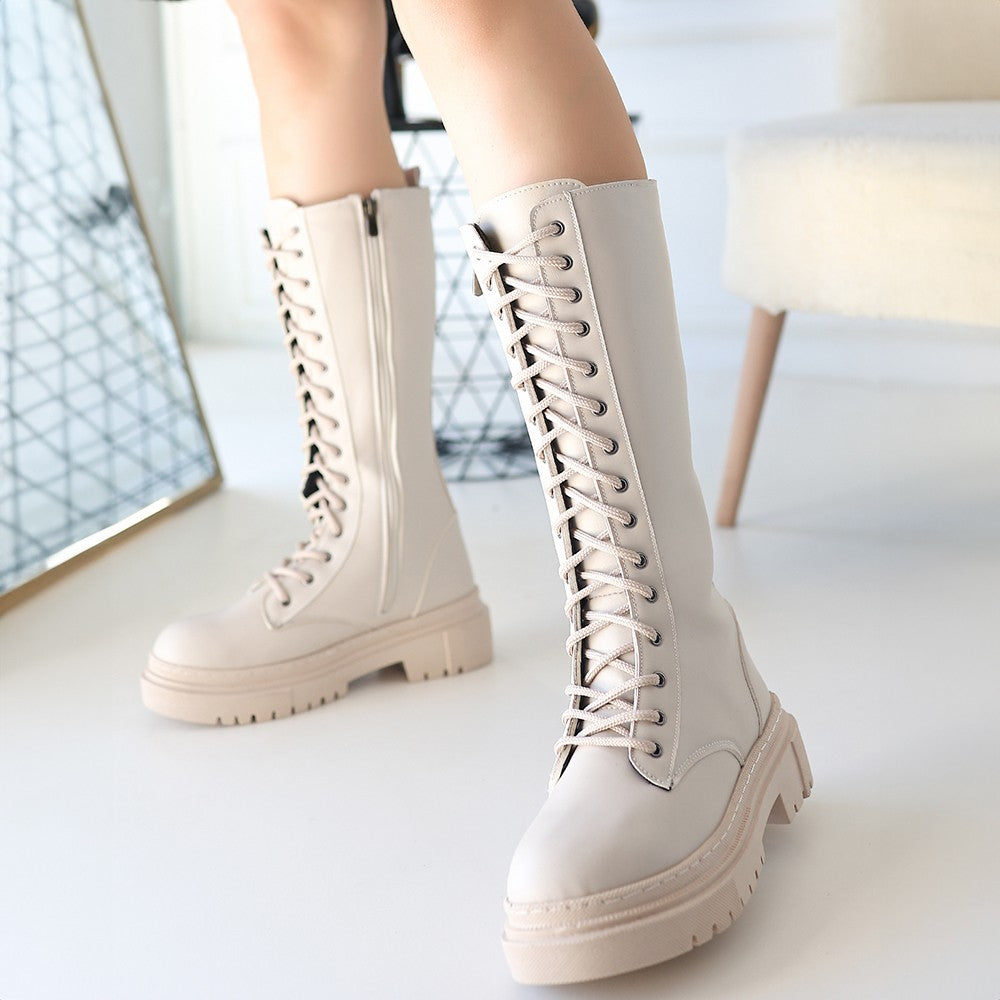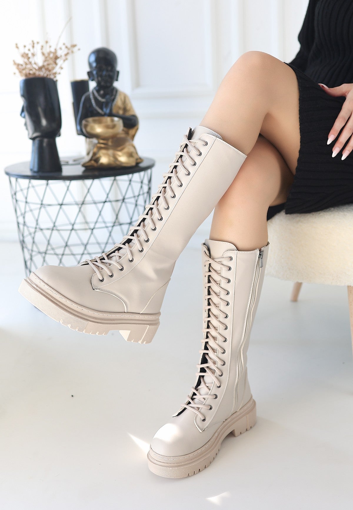 Detay: Topuklu Yandan Fermuarlı Diz Altı Çizme
