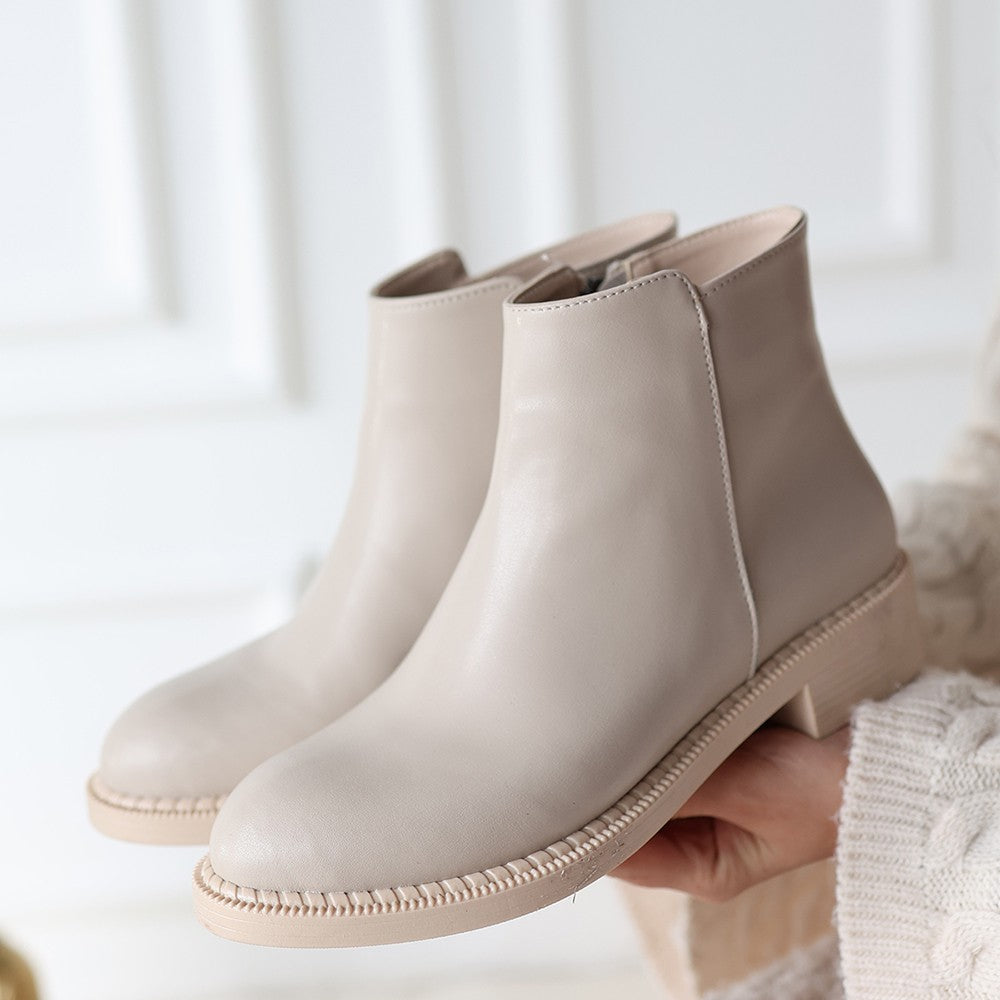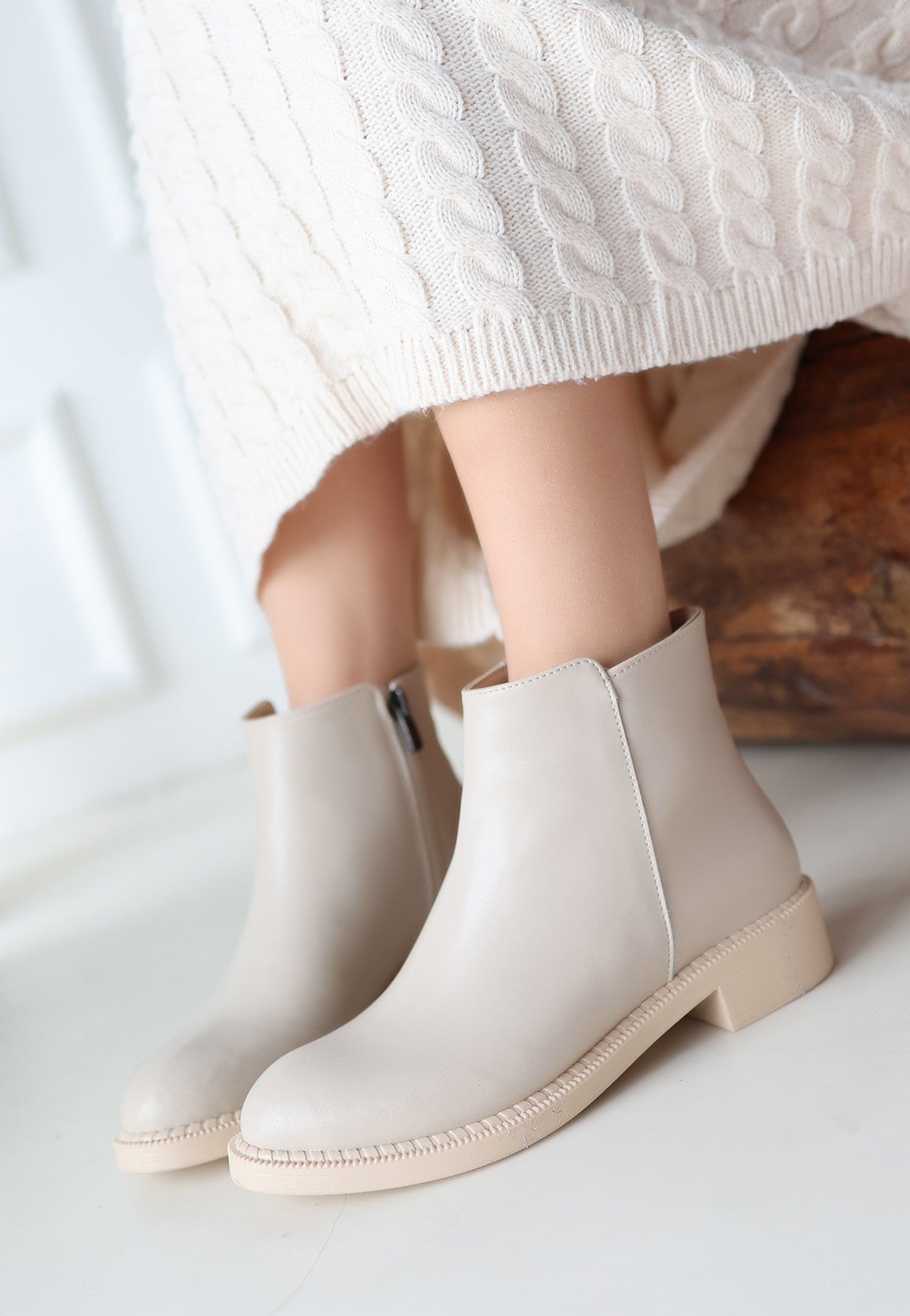 Moed Bej Cilt Topuklu Bot