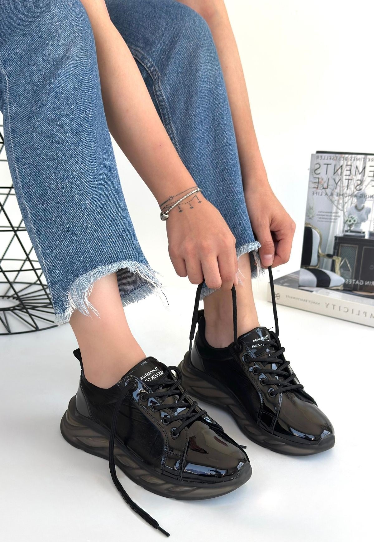 Piona Siyah Rugan Gri Tabanlı Spor Ayakkabı