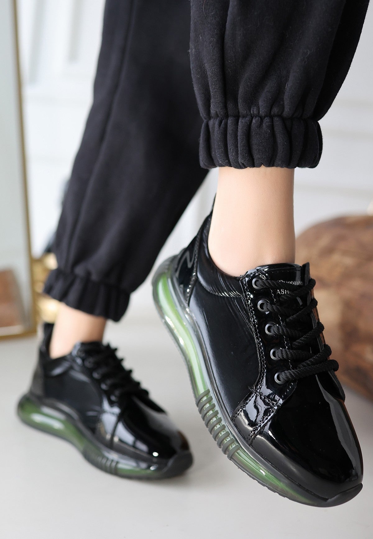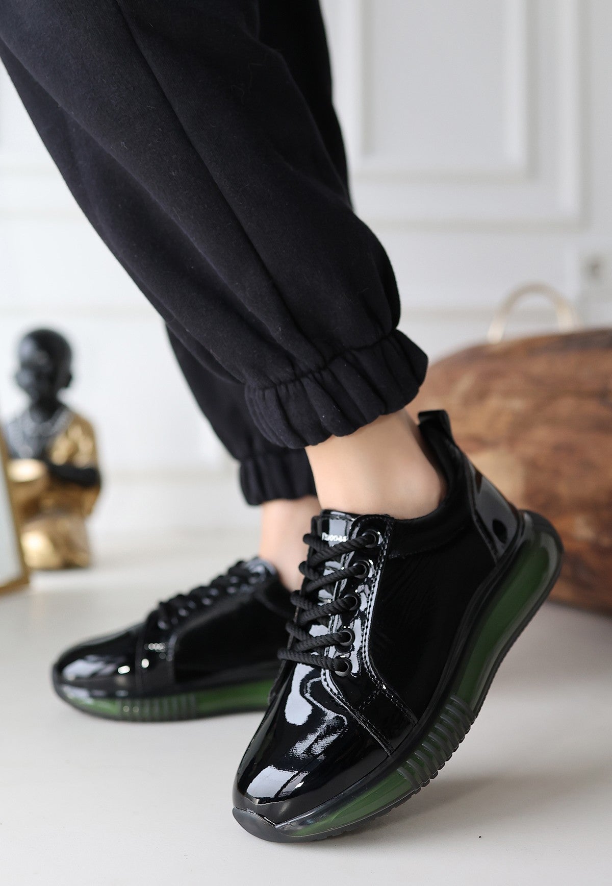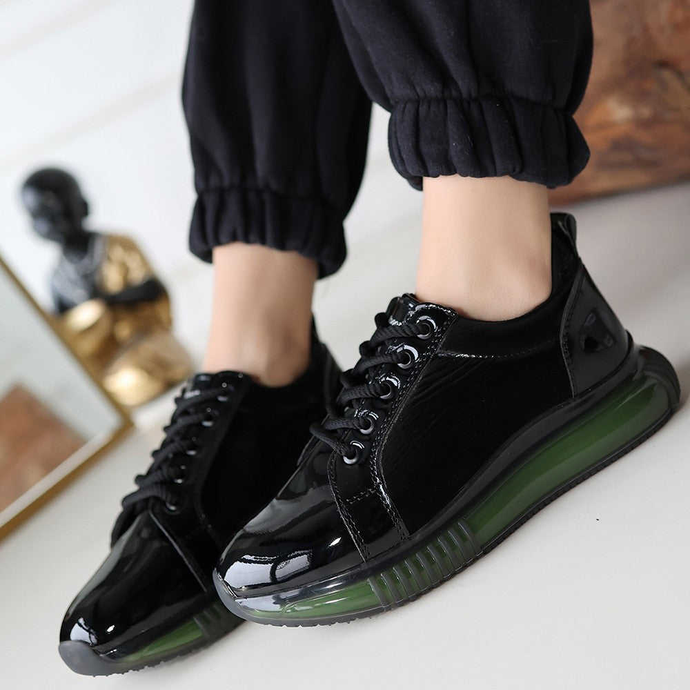 Piona Siyah Rugan Yeşil Tabanlı Spor Ayakkabı