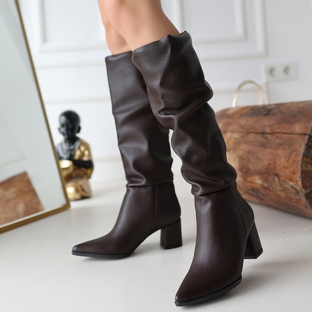 Detay: Topuklu Diz Altı Körüklü Çizme