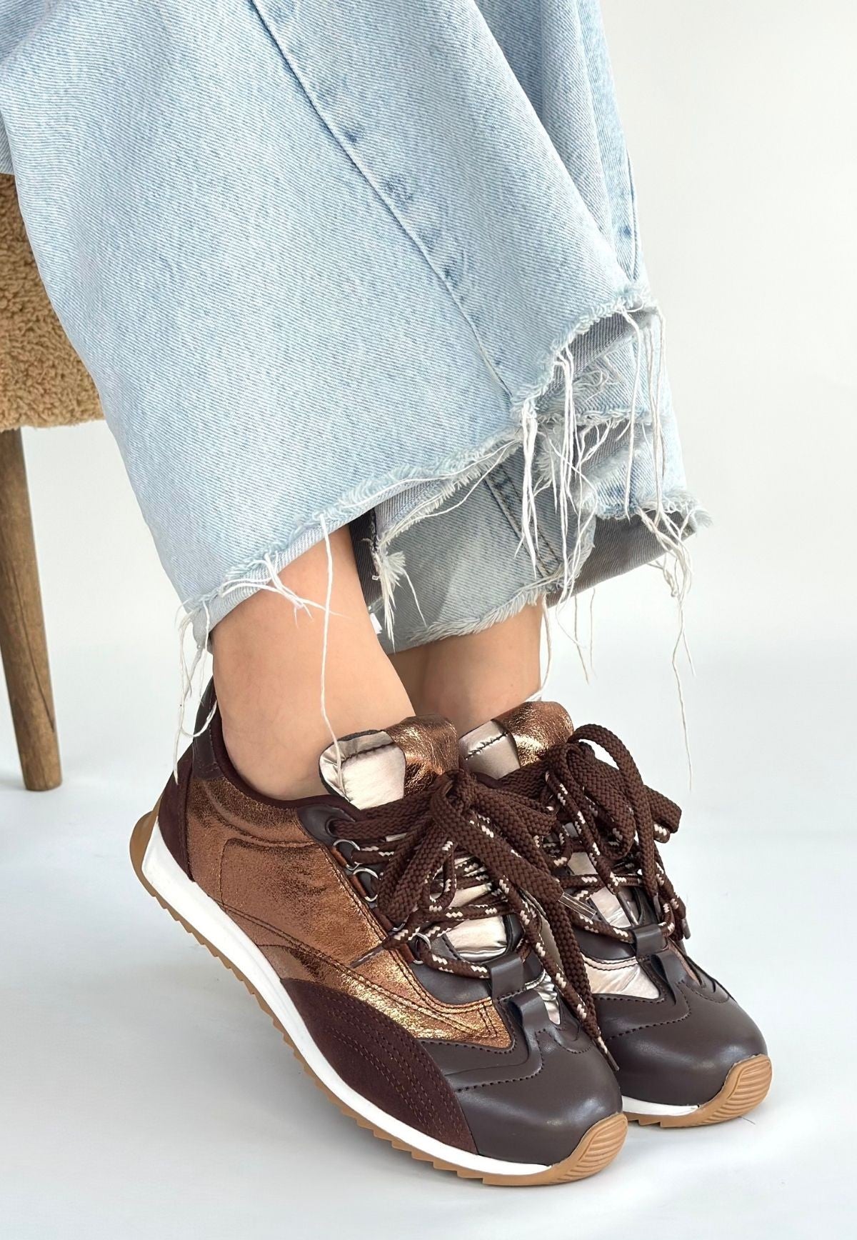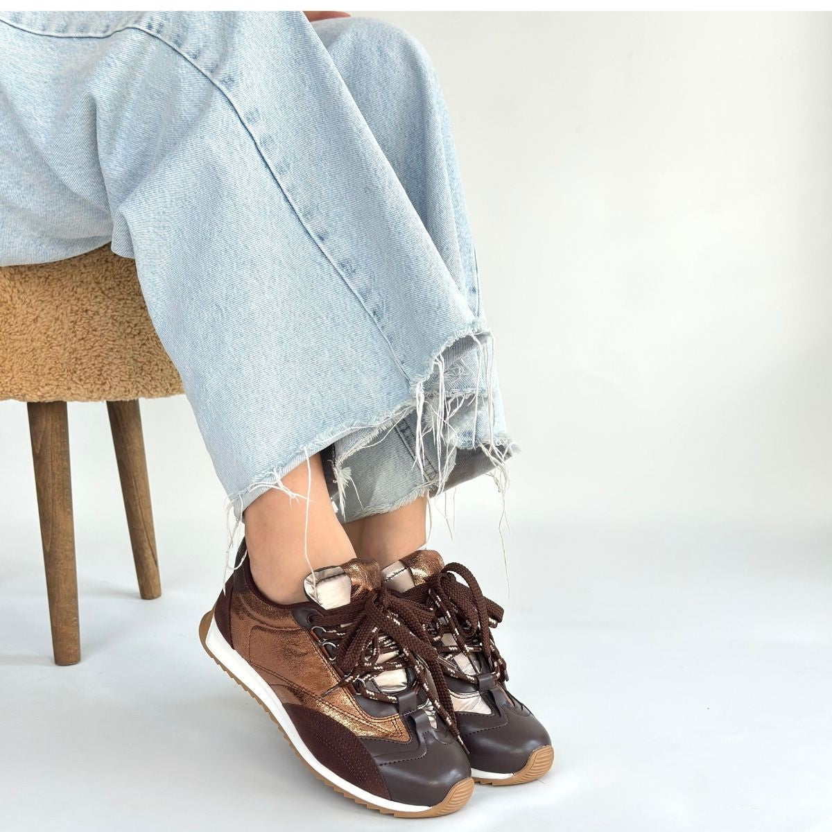 Ranu Kahverengi Cilt Paraşüt Detaylı Bağcıklı Spor Ayakkabı