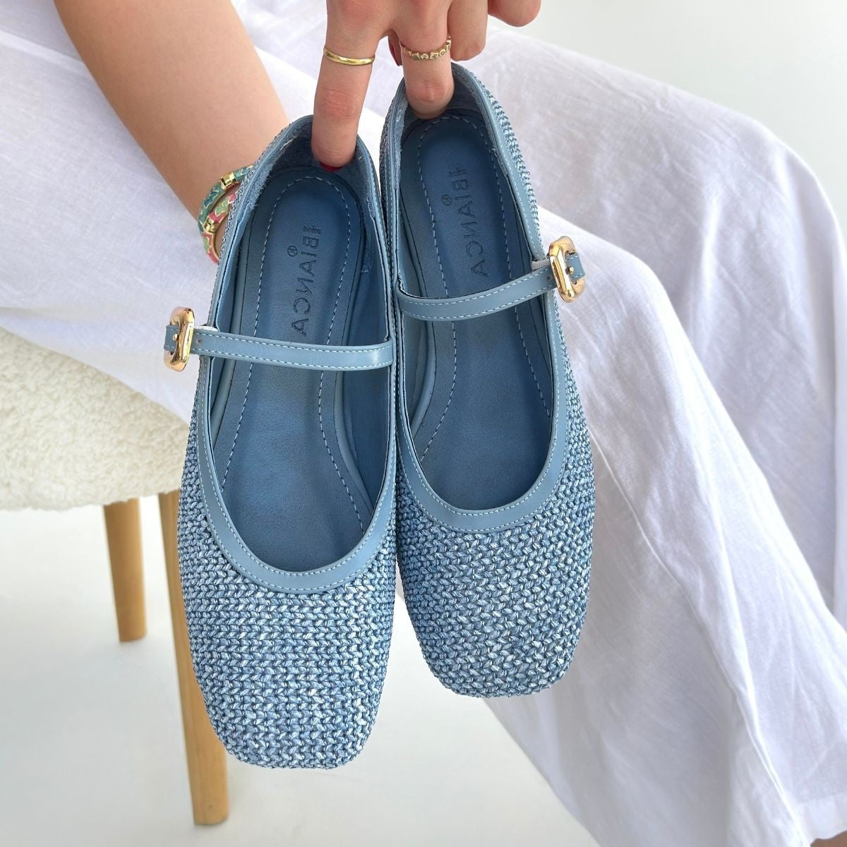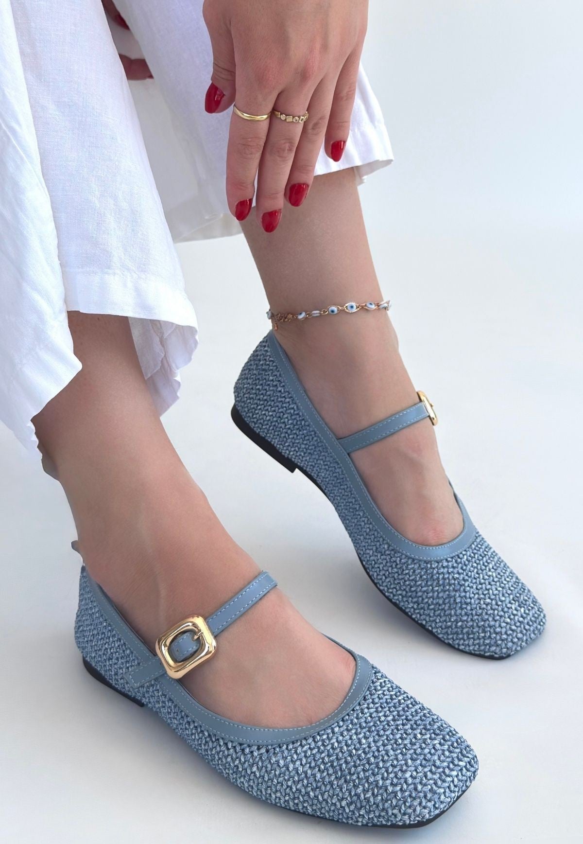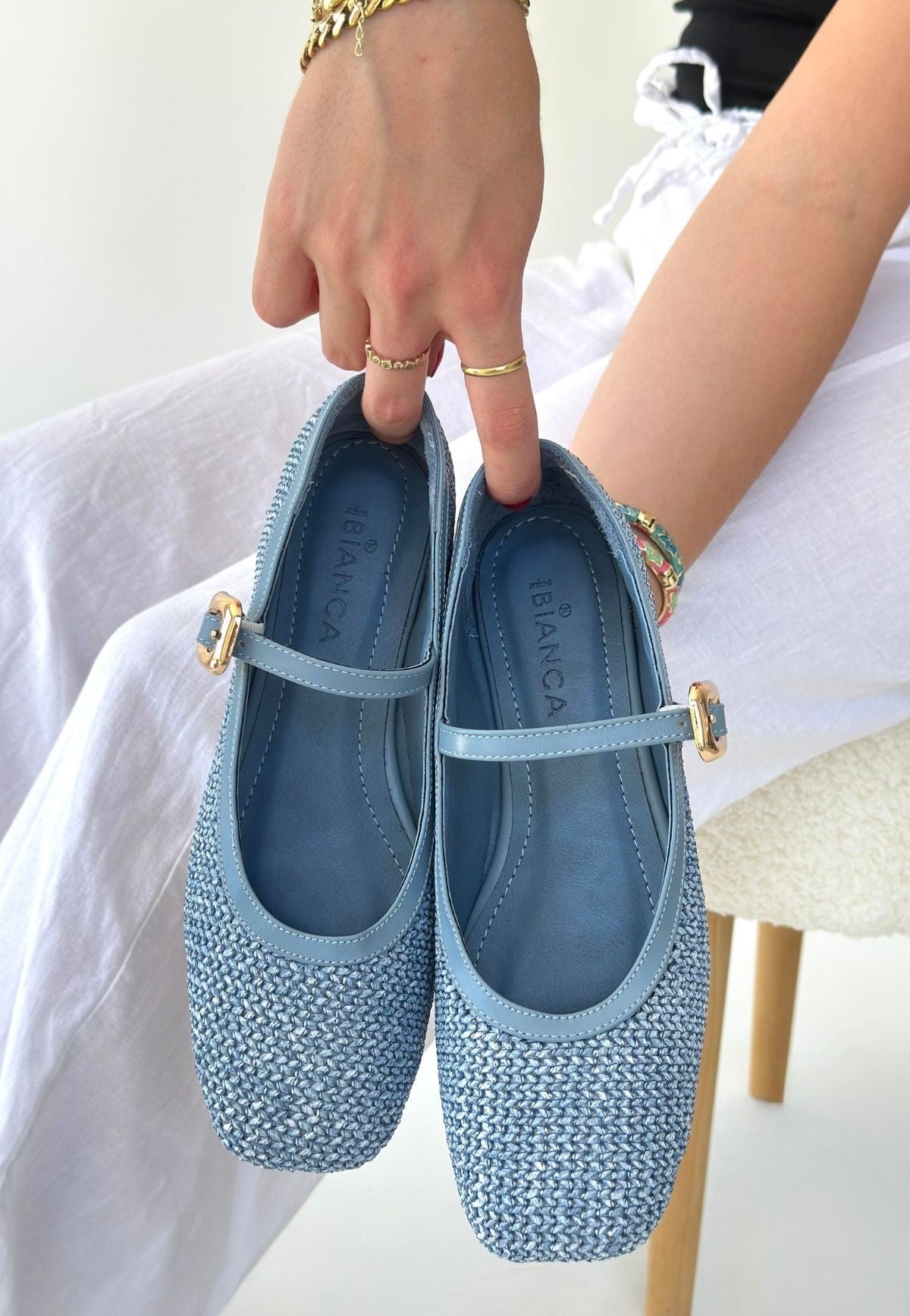 Rives Mavi Cilt Hasır Dokumalı Babet Ayakkabı