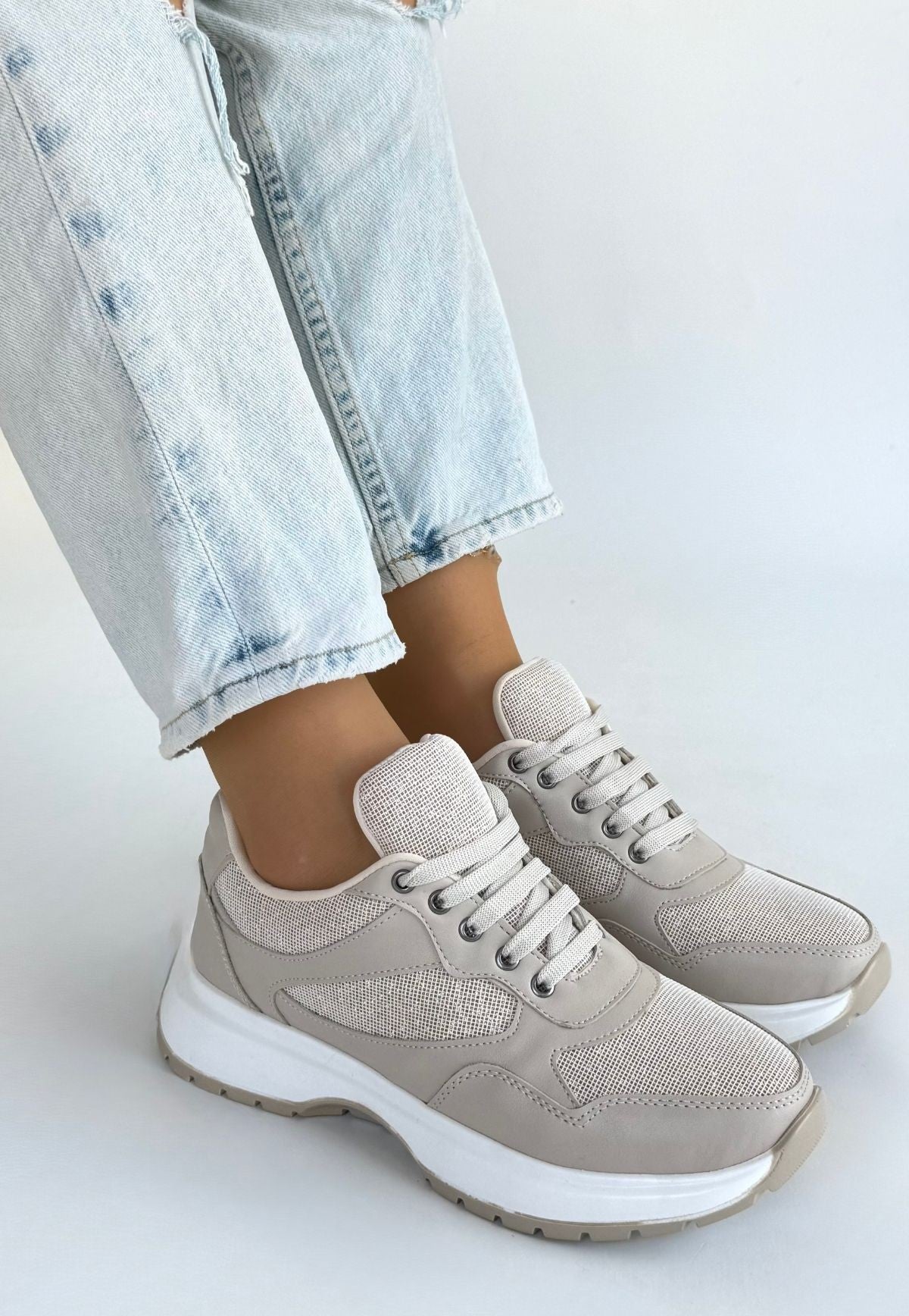 Slar Bej Cilt Bağcıklı Spor Ayakkabı
