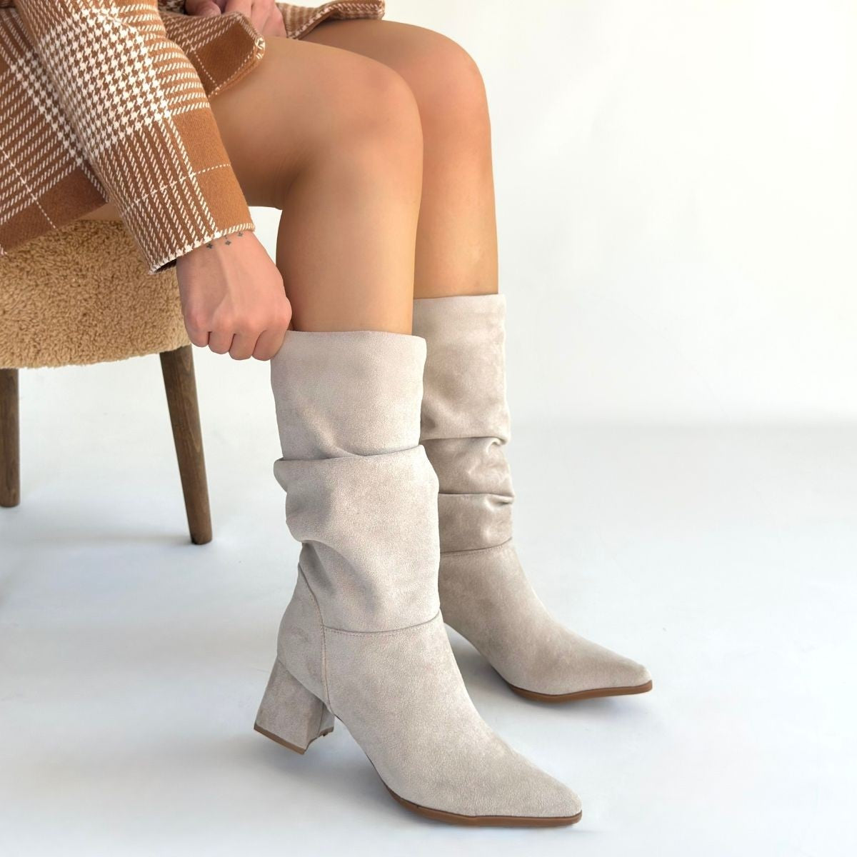 Detay: Topuklu Diz Altı Körüklü Çizme