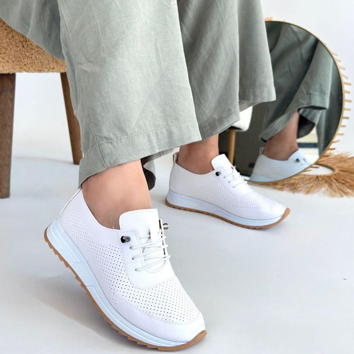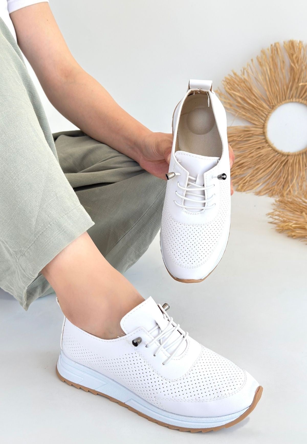 Tone Beyaz Cilt Bağcıklı Spor Ayakkabı