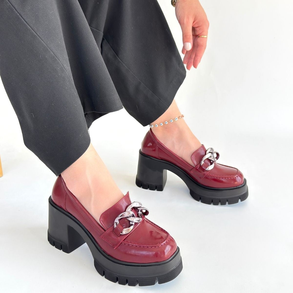 Winar Bordo Rugan Doldu Topuk Ayakkabı