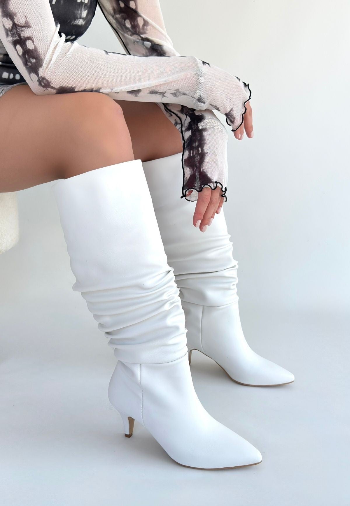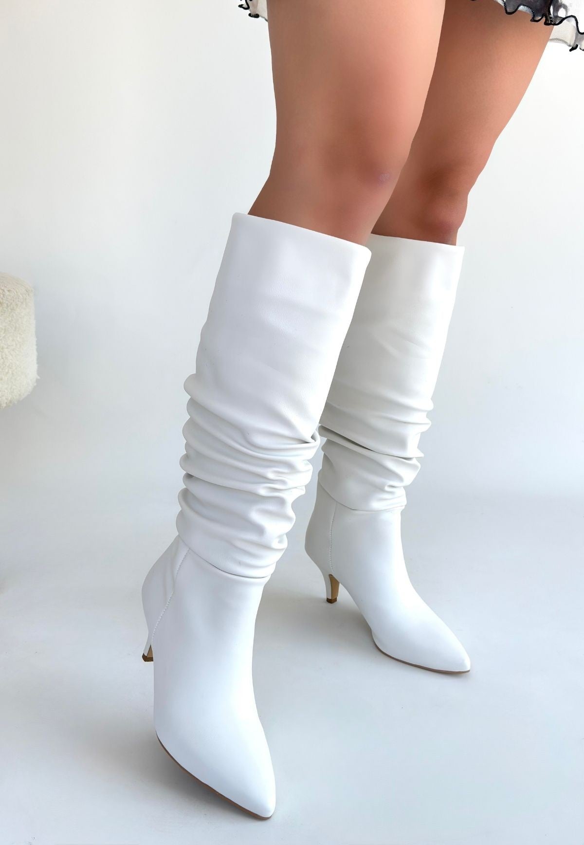 Zelya Beyaz Cilt Topuklu Çizme
