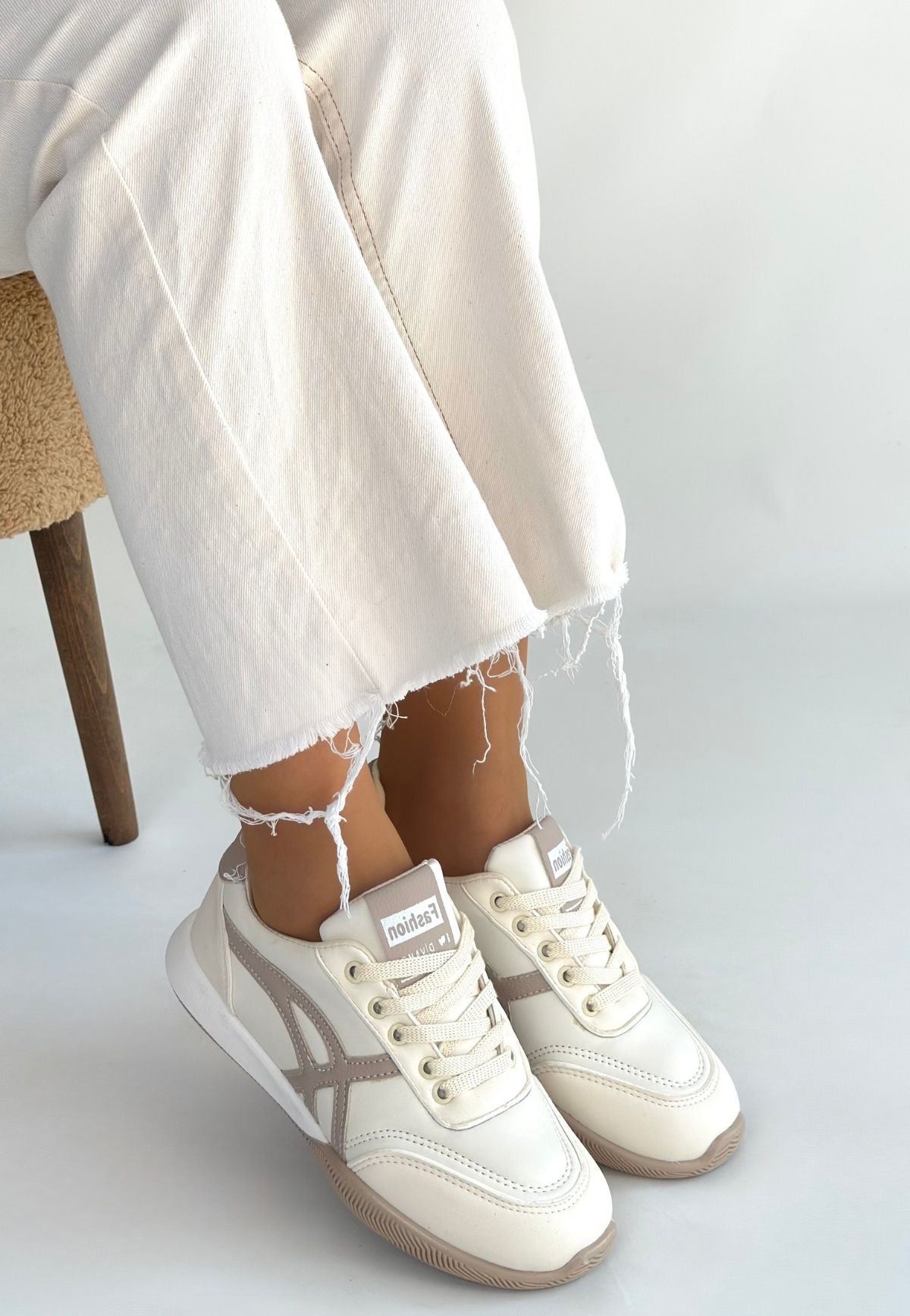 Zlay Bej Cilt Vizon Detaylı Bağcıklı Spor Ayakkabı